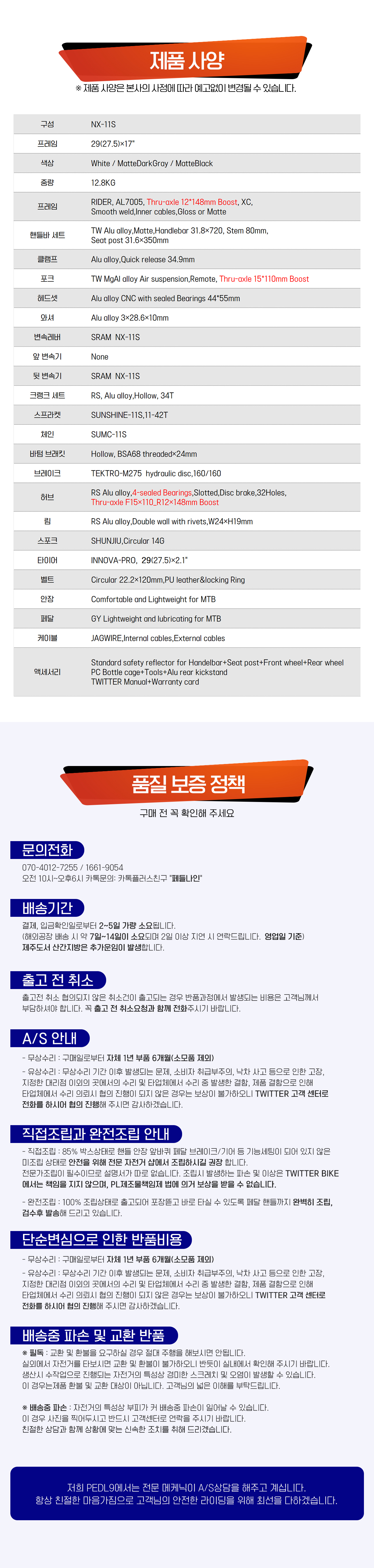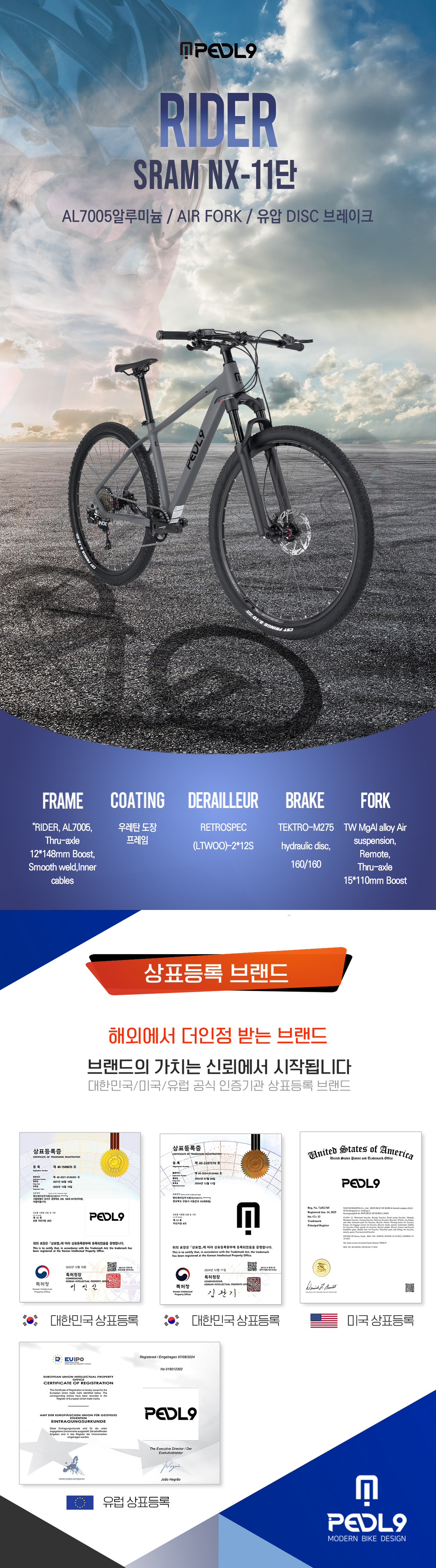 PEDL9 MTB자전거 RIDER SRAM NX11단 AL7005알미늄 유압DISC