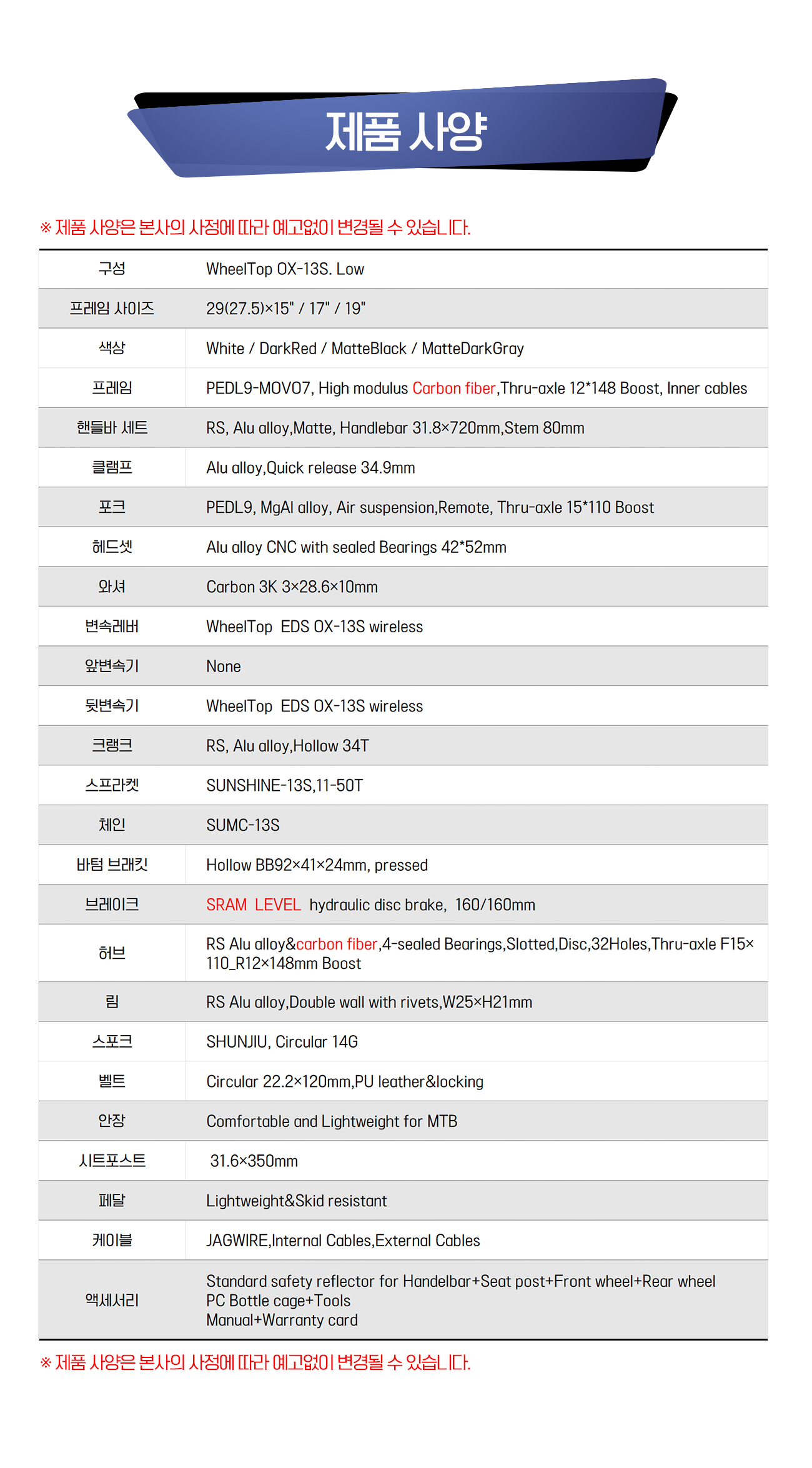 페들나인 MTB자전거 PEDL9 MOVO7 WHEEL TOP 무선전자변속 13단 AIR포크 풀카본