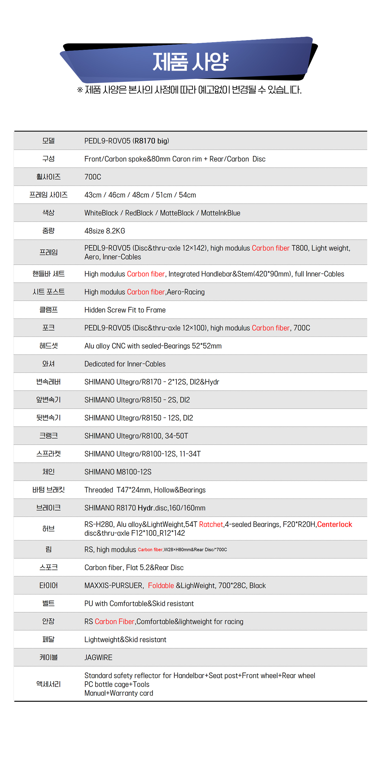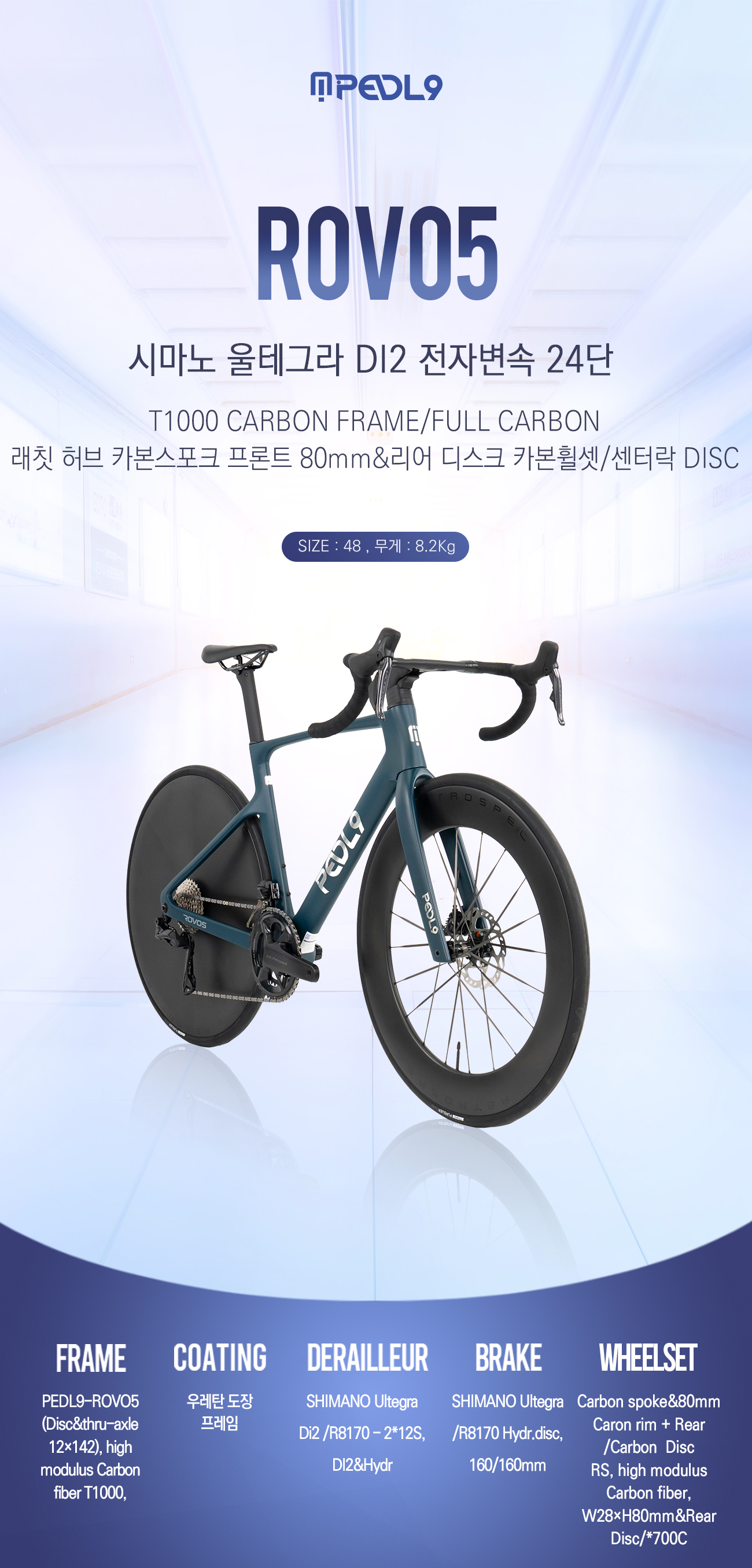 페들나인자전거 PEDL9 ROVO5 시마노 ULTEGRA Di2 전자변속 24단 래칫 디스크 카본스포크카본휠셋 풀카본