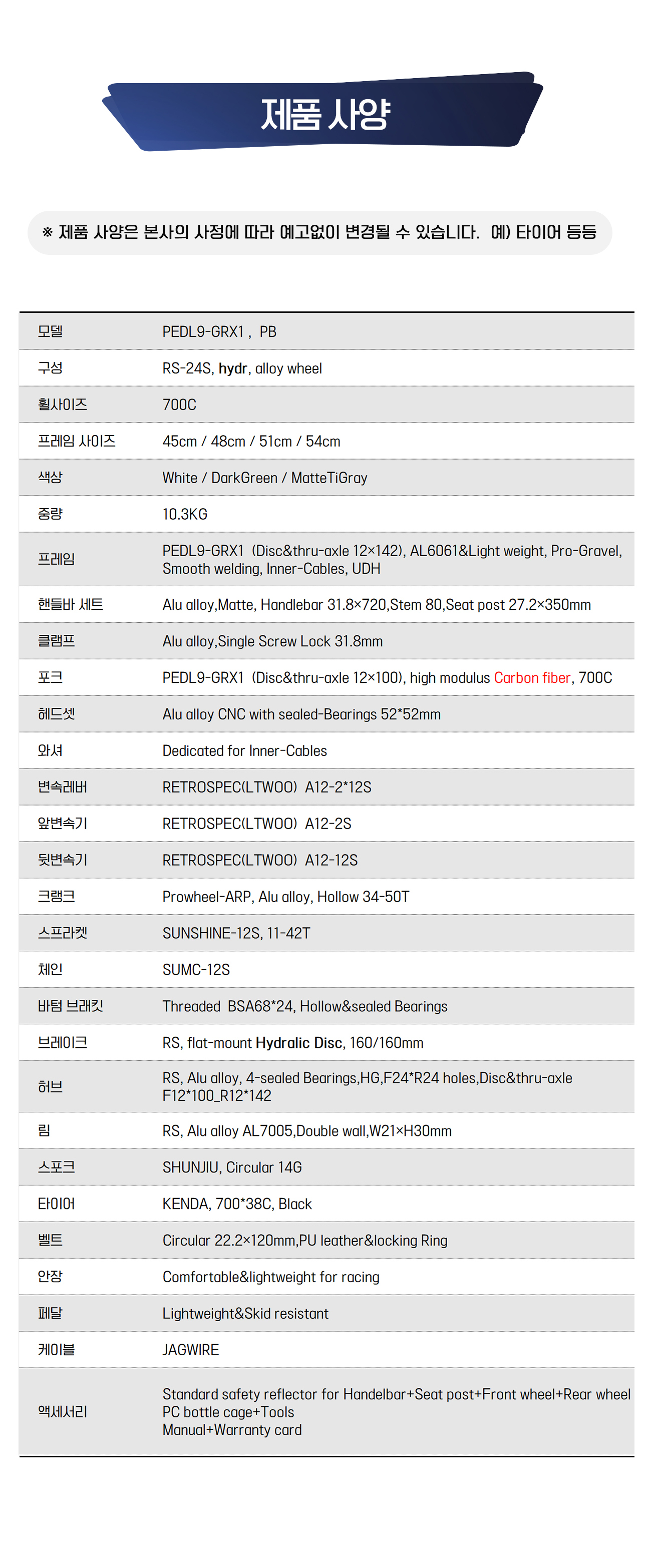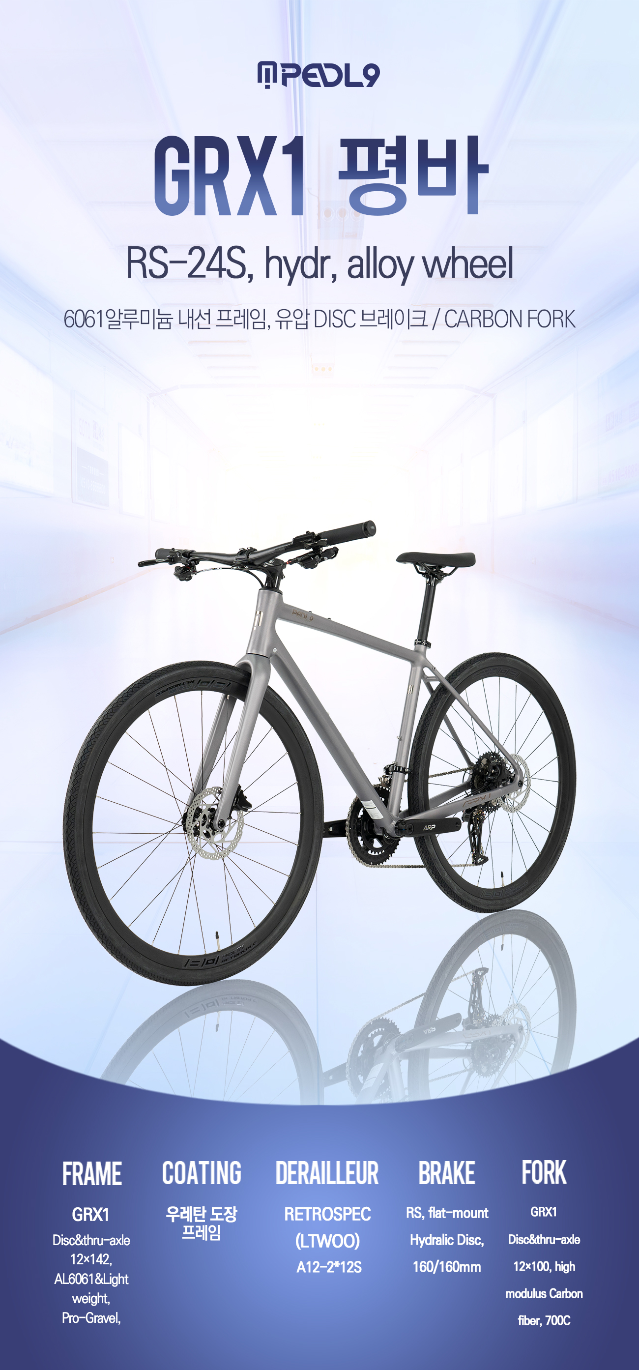PEDL9 페들나인로드자전거 GRX1 RS24단 유압DISC 카본포크 평바