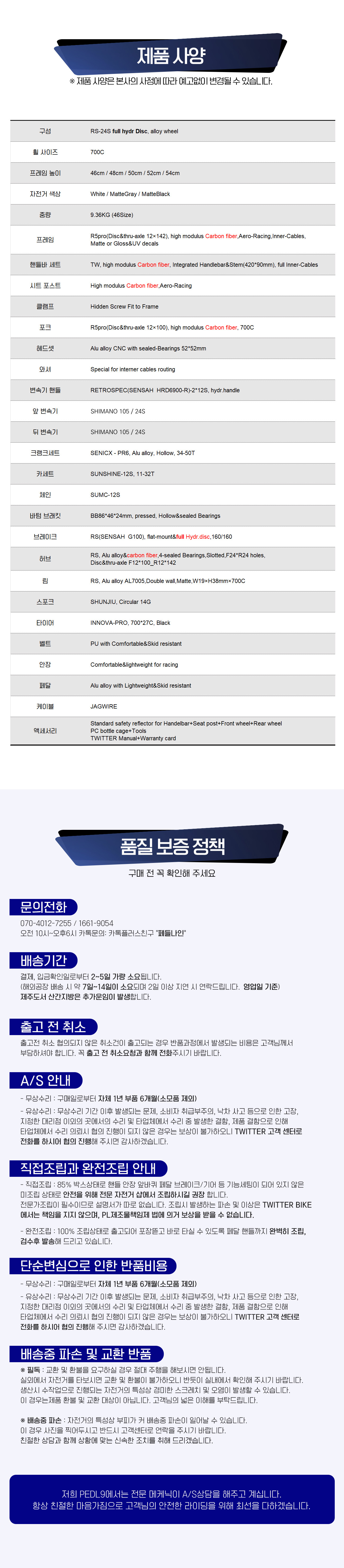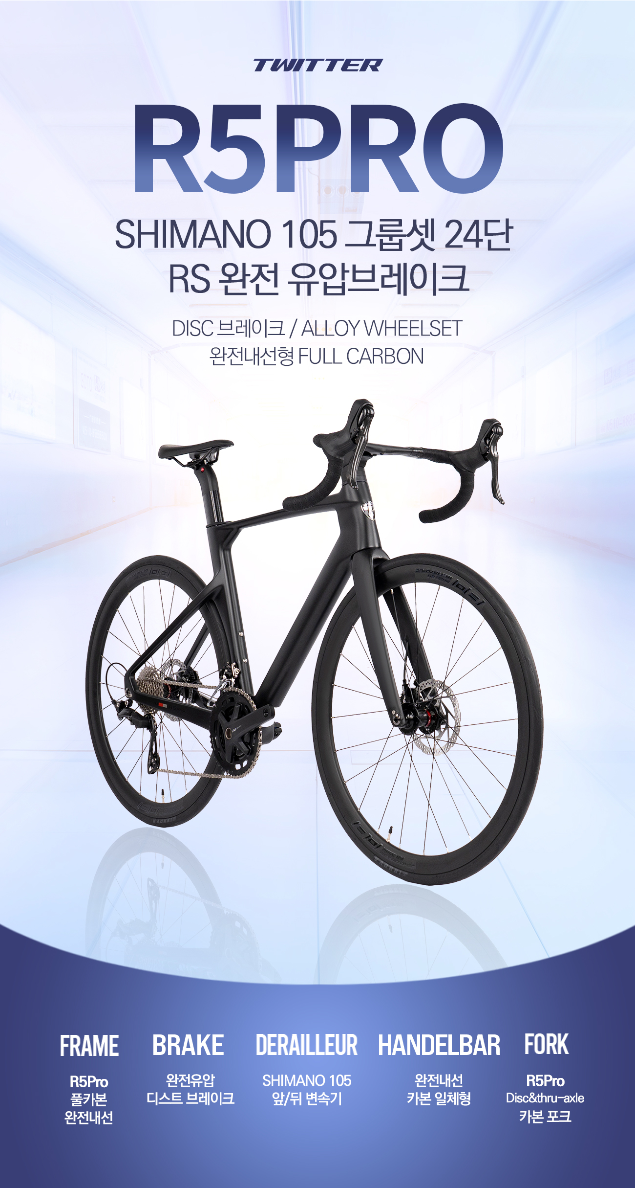 트위터자전거 R5 PRO 시마노 105 R7120 그룹셋 24단 완전유압DISC 풀카본 카본핸들바