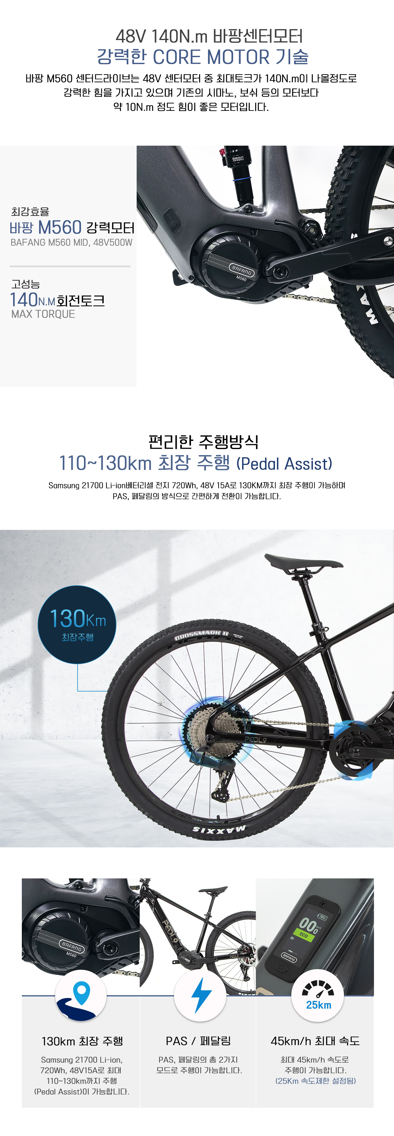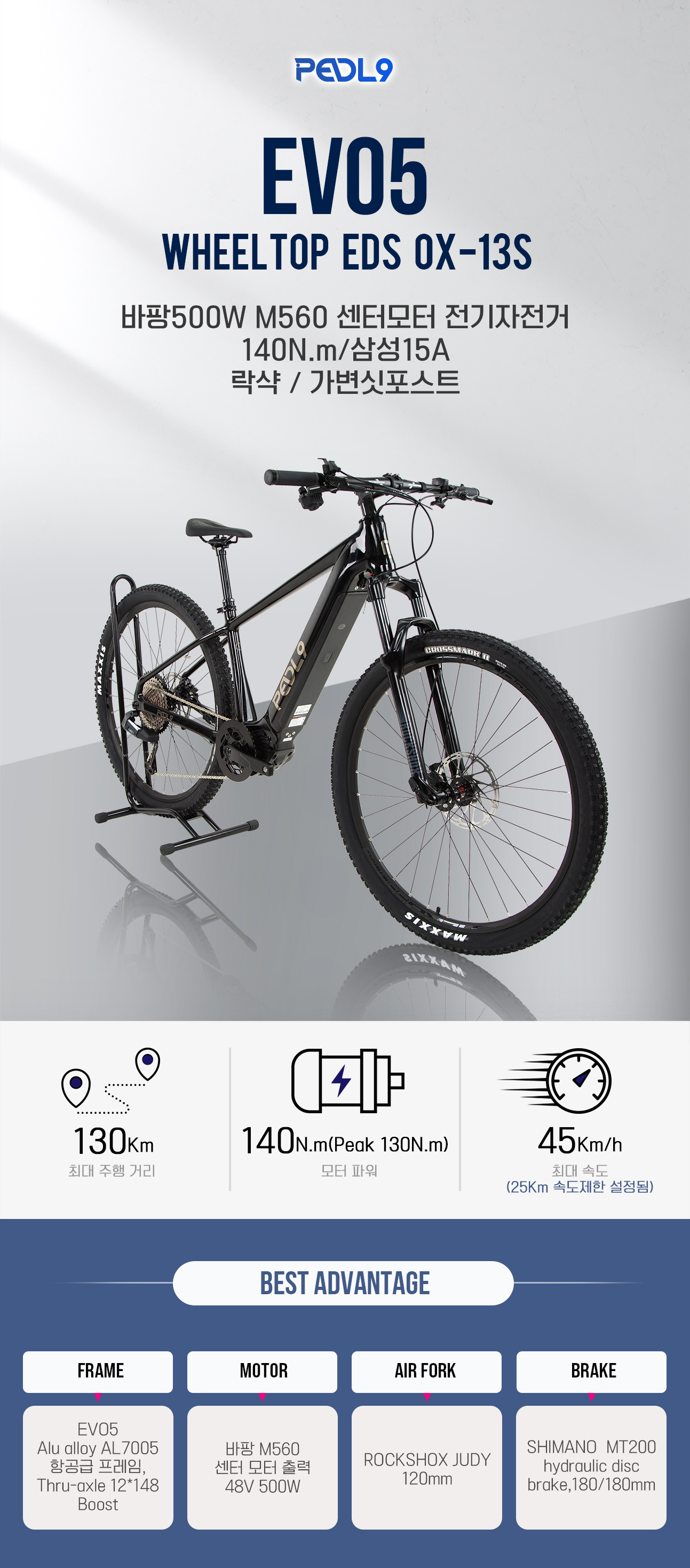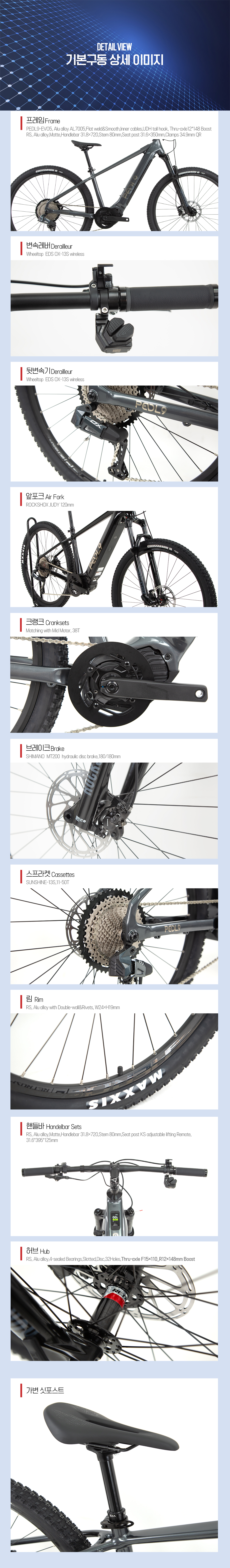 PEDL9 페들나인전기자전거 EVO5 EDS OX 13단 전자변속 바팡M560 500W센터모터 삼성베터리 락샥 가변싯포
