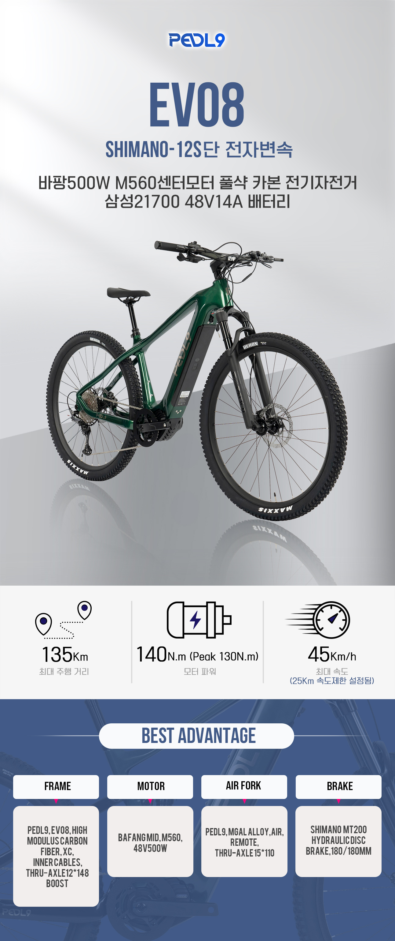 PEDL9 페들나인전기자전거 EVO8 시마노M6100 12단 풀카본 바팡M560 500W센터모터 삼성베터리 디지털핸들바