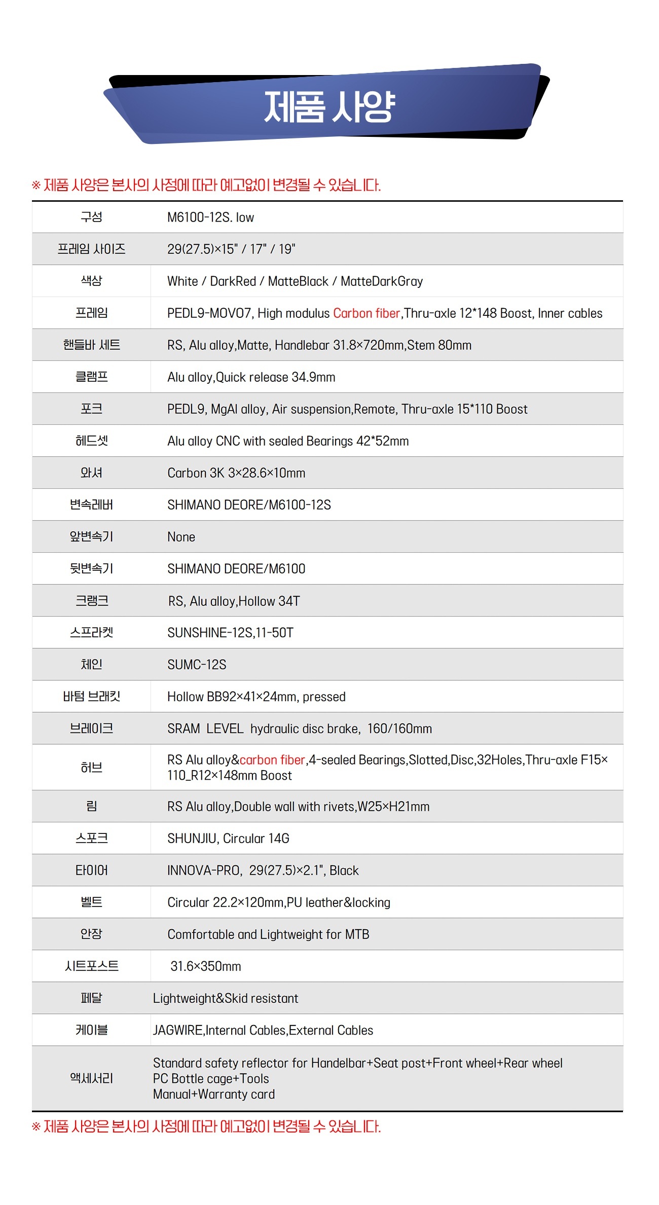 페들나인 MTB자전거 PEDL9 MOVO7 시마노 데오레 M6100 12단 풀카본